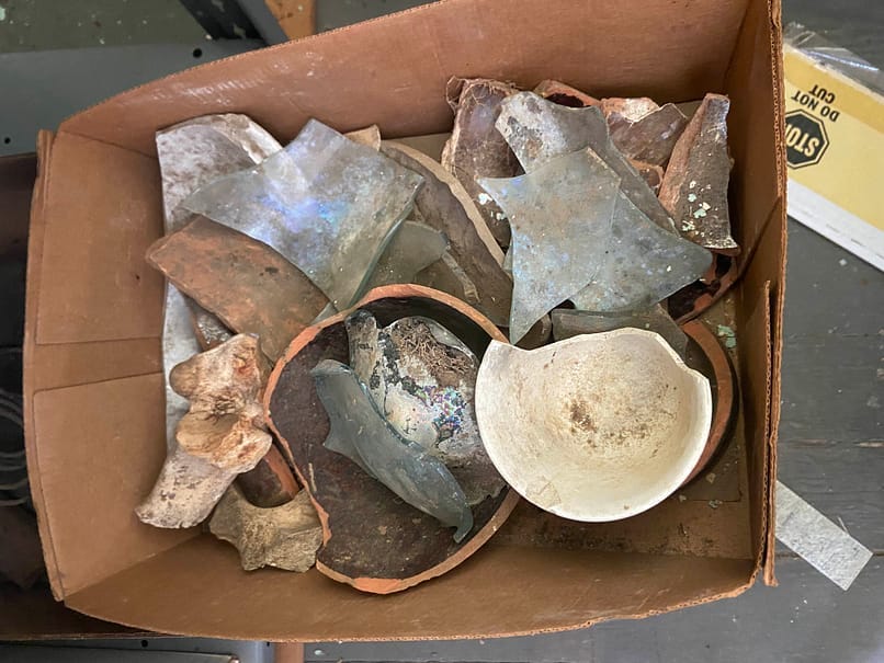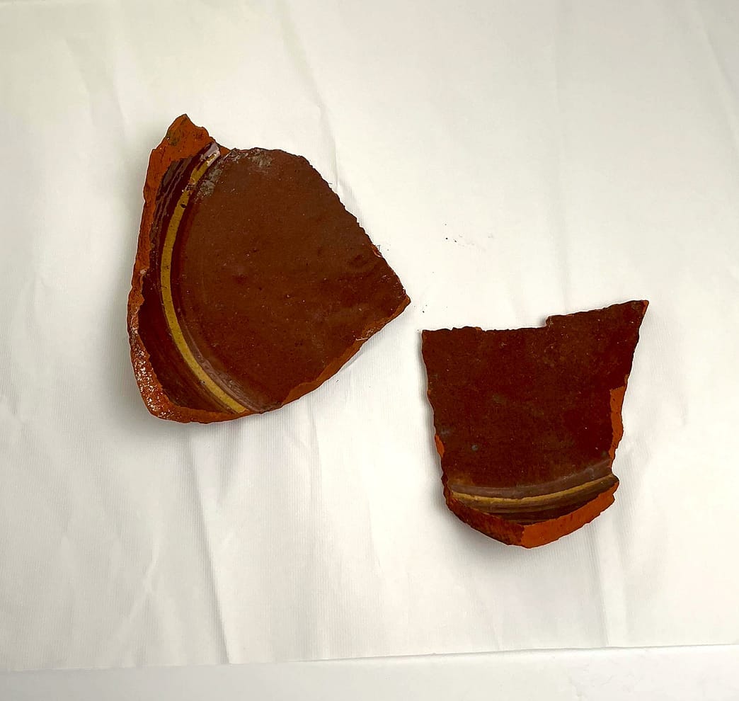 The box does not include documentation for these items, so we don’t have details about where they were found. However, this type of redware and some pottery styles can help us learn more about what these items mean.