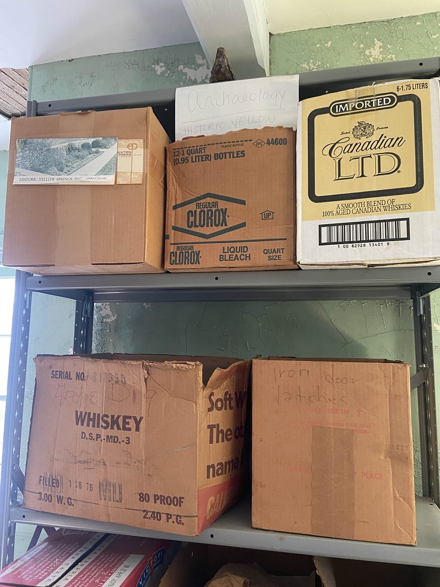 While going through some of the shelves in this room, the archivist found a shelf full of cardboard boxes, simply labeled as: “Archaeology- Historic Yellow Springs”.